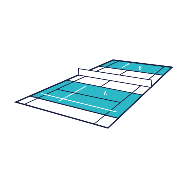Großfeld: 23,77m x 8,23m | grüne Bälle (Stage 1): 25% druckreduziert | Schlägerlänge: 63-68 cm Um auf dem normal großen Platz mit dem grünen Ball erfolgreich agieren zu können, müssen die Kinder bereits über eine gute Körperbeherrschung und ein ordentliches technisches Spielniveau verfügen. Der Fokus liegt auf der Verfeinerung der erlernten Techniken und dem Erwerb neuer, komplexer Schlagtechniken und deren taktischen Anwendung in unterschiedlichsten Spielsituationen. Die Kinder sollten in der Lage sein, ihr Spiel sowohl von der Grundlinie aufzubauen als auch bei geeigneter Situation den Angriff ans Netz zu suchen. |