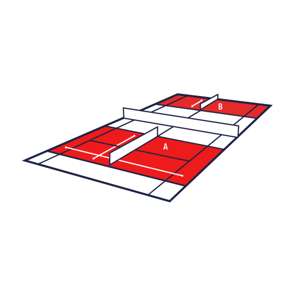 Midcourt: 18m x 6,40m | orangene Bälle (Stage 2): 50% druckreduziert | Schlägerlänge: 58-66 cm Im Vergleich zum Kleinfeldtennis der Stufe Rot ist das Spiel im Midcourt schon deutlich dynamischer und intensiver. Die Laufwege werden größer und neben dem Grundlinienspiel soll das Netzspiel verbessert und im Match angewendet werden. Die Schlagtechniken werden komplexer und der Fokus liegt auf den Hilfsaktionen der Schläge. Im Vordergrund steht aber immer der spielerische Ansatz. Das heißt, die Lernziele sind sehr matchnah angelegt und die Kinder sollen lernen, unterschiedliche Spielsituationen zu meistern. |